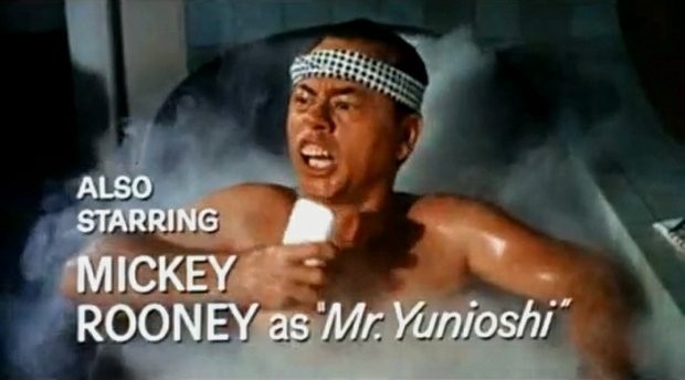 La recitazione di Mickey Rooney è effettivamente stereotipata e il trucco con i dentoni esagerato. Ora la rivista Variety l’ha inserito nella lista dei 10 film da vedere “preceduti da una spiegazione e forniti di un’avvertenza, riguardante razza, sessualità, disabilità e altro ancora”. Forrest Gump fa parte della stessa lista per essere “ostile ai manifestanti, agli attivisti e alla controcultura”. In più la rivista sottolinea come il protagonista prenda “il nome dal nonno Nathan Bedford Forrest, primo sostenitore del KKK”.