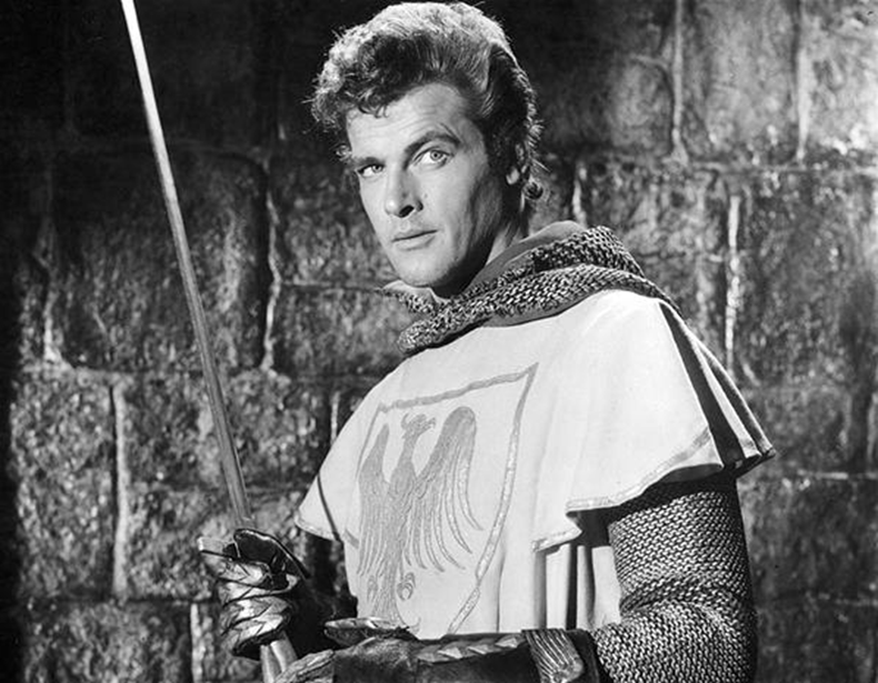 Non potendo più sperare in una vita in divisa, optò per la carriera di attore, anche in virtù del suo fisico atletico, di un notevole fascino e del sostegno da parte del regista Brian Desmond Hurst, che si offrì di pagargli tutte le spese di studio alla Royal Academy of Dramatic Art. Cominciarono nella fine degli anni ‘40 le sue prime apparizioni cinematografiche, grazie a un contratto con la MGM, ma fu la televisione a dargli il successo che sperava. Venne infatti scelto per il ruolo di protagonista nella serie tv britannica Ivanhoe. Con 39 episodi di 25 minuti ciascuno, firmati dal regista Peter Rogers e ispirati al romanzo di Walter Scott, Roger Moore divenne rapidamente uno dei giovani attori più apprezzati della fine degli anni ‘50.