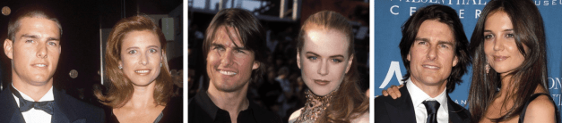 Ad introdurre Tom alla setta di Scientology fu la sua prima moglie, l’attrice Mimì Rogers, nata nel 1956. I due si sposarono nel 1987 per poi divorziare nel 1990. Fu poi il turno di Nicole Kidman (nata nel 1967). Lei e Tom rimasero insieme per più di 10 anni, dal 1989 al 2001, e rinnovarono persino le loro promesse matrimoniali. Per poi separarsi appena 2 mesi dopo. La terza moglie di Cruise, Katie Holmes (nata nel 1978) restò tale per circa 6 anni, fino al 2012. L’attrice divorziò da Tom soprattutto per tenere lontana la figlia Suri dal culto di Scientology.